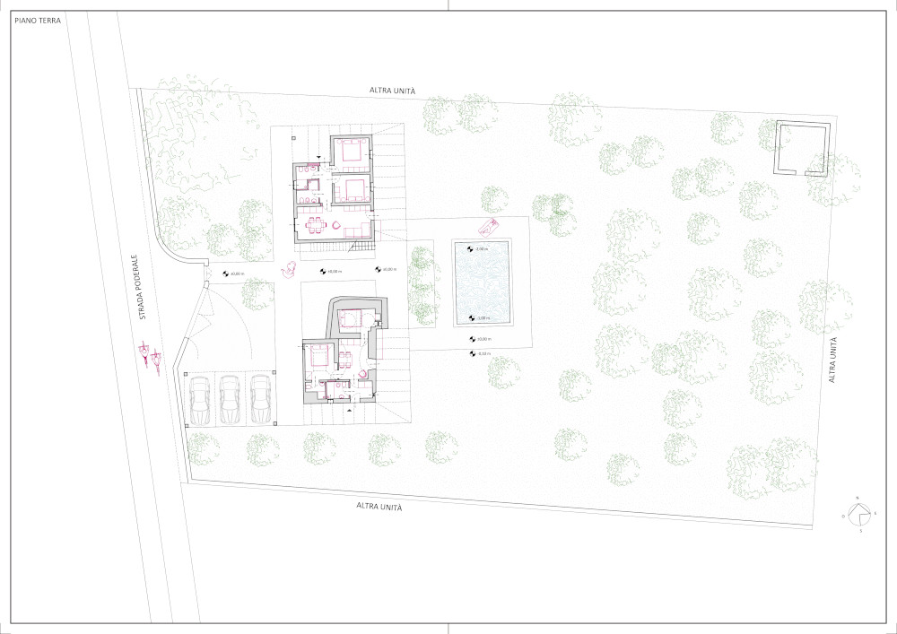 Il progetto, situato nelle campagne di Ostuni, prevede la ristrutturazione di due abitazioni indipendenti destinate ad affitti brevi, una delle quali ricavata in un trullo. L’intervento mira a preservare le caratteristiche tipologiche originarie, integrando impianti efficienti e soluzioni tecnologiche a basso impatto. Il complesso comprende una piscina con area solarium, ampie zone verdi con essenze autoctone, pergolati con cucine esterne e zone pranzo all’aperto, oltre a un parcheggio coperto da tettoia in legno e acciaio. Il progetto combina recupero architettonico, comfort contemporaneo e piena integrazione con il paesaggio rurale pugliese.